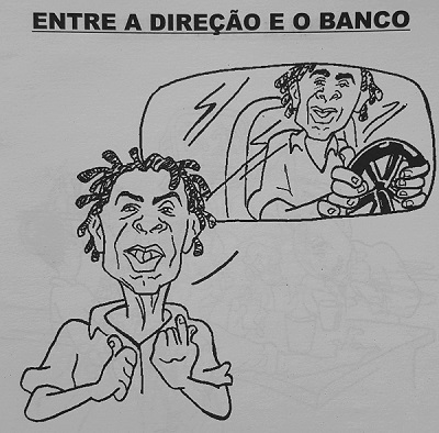 O amigo simplesmente comentou: – Eu sei qual é o problema! Ele está entre a direção e o banco.