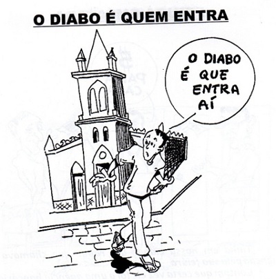 Ao entrar sozinho, sentiu algo estranho e disse: – “O diabo é quem entra aqui sozinho, mais eu não”.