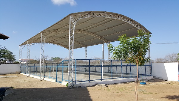 Essa quadra esportiva é um valioso equipamento pedagógico utilizado pelos professores da escola e as suas pequenas dimensões são indicadas para iniciação nas modalidades esportivas