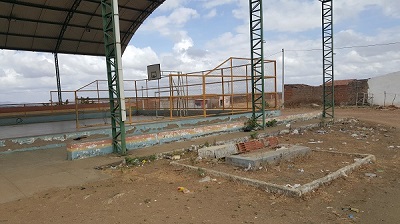“O Ginásio Poliesportivo do Centro de Referência de Assistência Social, o CRAS II, no Conjunto Cesar Cals, foi flagrado este fim de semana com sinais de abandono e falta de manutenção. O local, usado para práticas esportivas pela comunidade, apresenta estrutura danificada pela ação do tempo, lixo acumulado, pintura desgastada desde a sua inauguração, que ocorreu no ano 2013. De lá para cá, o local continua sendo usado por jovens e adolescentes que mesmo com dificuldades não deixam de realizar partidas de futsal, além deste uso, a comunidade vez por outra se reúne para eventos promovidos pelo CRAS II.” (SERTNEWS, 2018: Disponível em http://www.sertnews.com.br/noticia/645/quadra-no-bairro-cesar-cals-flagrada-com-sinais-de-abandono-e-lixo-acumulado. Acesso no dia 3 de dezembro de 2018)