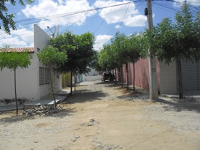A SITUAÇÃO ESTRUTURAL: Uma grande parte dessa rua ainda não possui pavimentação e nem delimitação das quadras com o meio fio, fato que pode gerar problemas no futuro para instalação de energia com a COELCE, a Companhia Energética do Ceará, atual Enel.