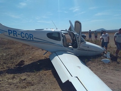 Na manhã desta sexta-feira, dia 14, um avião acabou tendo que pousar as pressas no campo de pouso deste Município. O avião tinha como destino final o Município de Tauá, no entanto teve de interromper o seu trajeto e fazer um pouso forçado no Campo de Aviação do Município. Entre os passageiros estava Celiton Luiz Costa de Oliveira, dono da Construtora CLC, empresa responsável por realizar obras de manutenção em rodovias que cortam o Estado do Ceará… Por telefone Celiton disse estar bem, e que os danos foram materiais. O empresário continuou a sua viagem de carro e está no Município de Monsenhor Tabosa. Segundo ele a viagem é para tratar da situação de obras na região do Sertão cearense. De acordo com ele, o pouso forçado foi devido a problemas no trem de pouso e que o piloto do avião continua no local do incidente. Apesar de ter contratado a empresa aérea para o serviço, Celiton não soube informar o nome da prestadora e nem detalhes do avião… Uma equipe do hospital foi destinada ao local para auxiliar, caso houvesse alguém machucado. Até o fechamento desta matéria a aeronave permaneceu no local aguardando a chagada da Perícia.” (SERTNEWS, 2018: Disponível em http://www.sertnews.com.br/noticia/343/em-boa-viagem-piloto-faz-pouso-forado-em-avio-aps-pane-no-motor. Acesso no dia 14 de setembro de 2018)