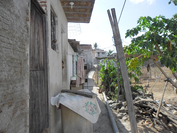 Os moradores desse local, no passado, adaptaram a tampa de um dos principais esgotos desse bairro como o piso de sua rua, que não possui iluminação pública ou arborização.